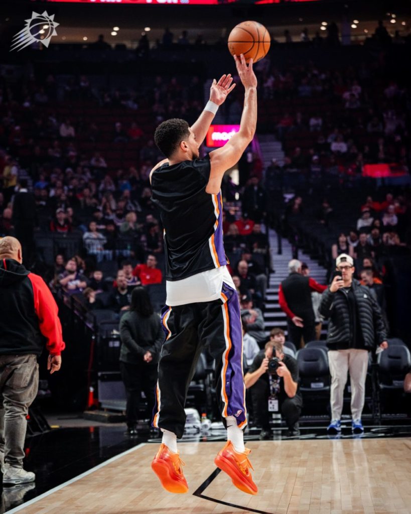 ブッカーがNBAの試合にて Book 2 “Rising” を着用